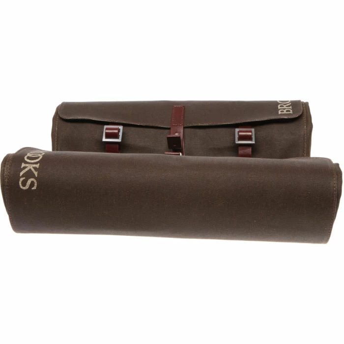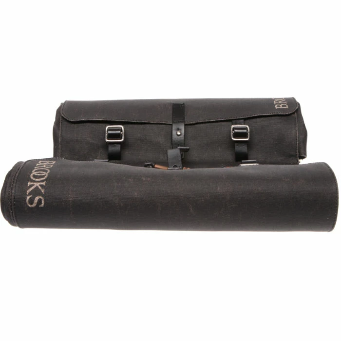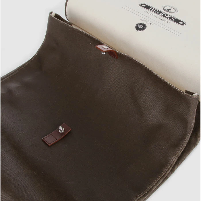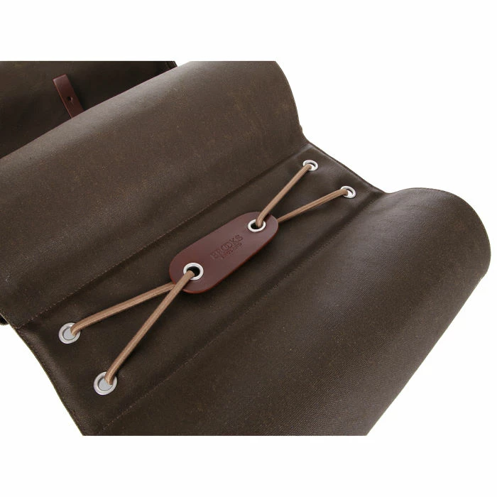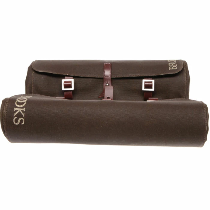 Cykeltaske, der kan rulles sammen, fremstillet i Italien af det fineste vandtætte bomuldmateriale og vegetabilsk garvet læder med en fantastisk finish.