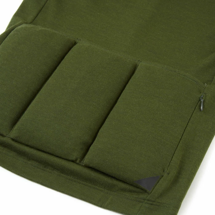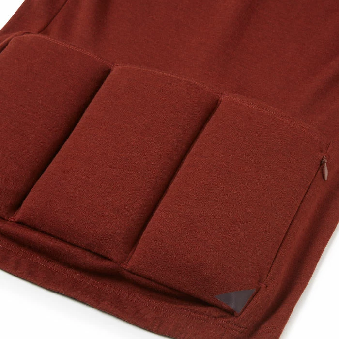 The real secret of this jersey is an added polypropylene layer on the inside of the fabric. Soft next to the skin, this is incredibly hydrophobic, moving any moisture build-up to the outside for it to evaporate even quicker. Though Merino keeps working when it is wet, this is a nice touch to keep you more comfortable and concentrating on enjoying the ride.