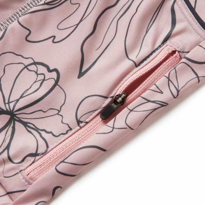 A low collar also gives the jersey a more feminine look. There are no sleeve grippers, instead the fabric naturally hugs your arms without pinching into the skin. And with three vertical pockets and a fourth zipper pocket, there is plenty of room for storage on every ride.