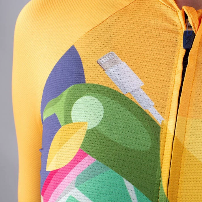 Isadore gives the Vision of Life Women jersey a slim and comfortable fit, offering a flattering fit which still offers easy freedom of movement. The bottom hem keeps the fit snug when you’re in a riding position and this too is made with recycled materials while longer cut sleeves keep the airflow smooth as you push the pace. Last but by no means least the jersey is adorned by a fun, fresh and distinctive design, created by contemporary artists local to Isadore, giving you a brilliantly beautiful jersey for summer spins.
